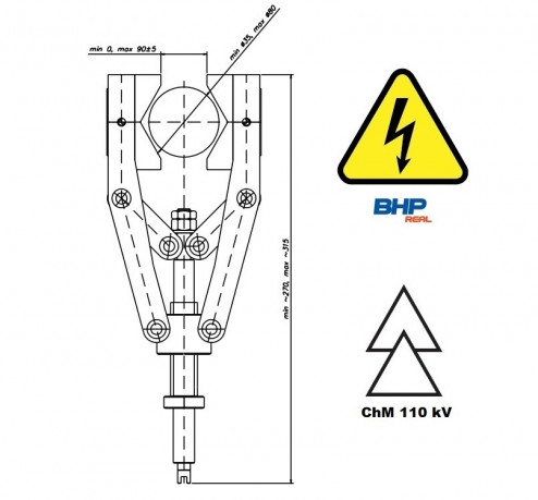 - chwytak manewrowy ChM 110kV przystosowany jest do zakładania i wyjmowania wkładek bezpiecznikowych oraz osłon i przegród izolacyjnych w urządzeniach elektroenergetycznych o napięciu znamionowym do 110kV ( stacje trafo i rozdzielnie elektryczne niskiego, średniego oraz wysokiego napięcia )