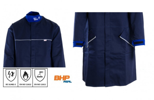 - profesjonalny płaszcz chroniący przed zwarciowym łukiem do pracy przy urządzeniach elektrycznych i rozdzielczych niskiego i średniego napięcia technika PPN, obsługa pojazdów elektrycznych