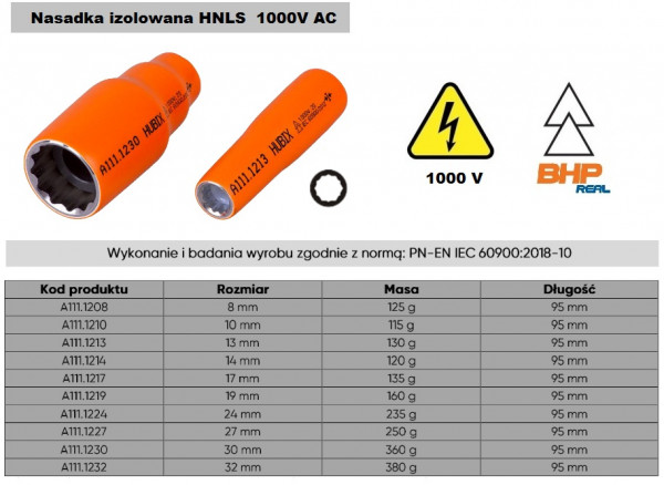 - HNLS-13 izolowana nasadka długa specjalna do 1 kV A111.1213 - 136,00 zł netto sztuka +23% Vat.