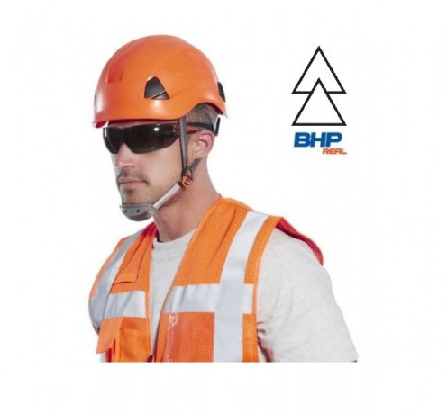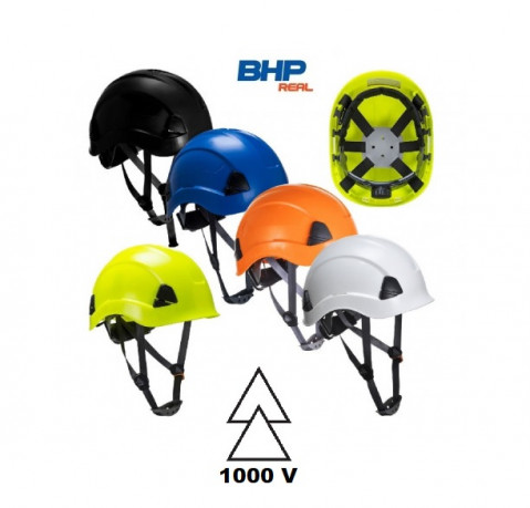 - kask ochronny elektroizolacyjny PS specjalnie zaprojektowany do prac na wysokości bez daszka wykonany z lekkiego tworzywa ABS, w komplecie z okularami przeciwodpryskowymi, przeznaczony dla elektryków, energetyków i elektromonterów wykonujących prace przyłączeniowe i instalacyjne niskiego napięcia do 1000V AC PPN