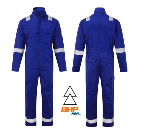 - kombinezon ochronny BIZ-FR wykonany z trudnopalnej bawełny z domieszką 1% włókna węglowego które zapewnia właściwości antyelektrostatyczne