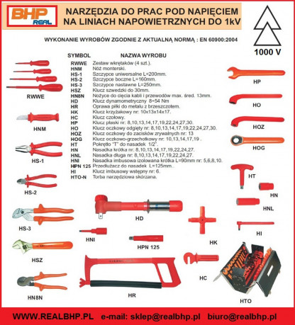 - klucze czołowe do zacisków HC, klucze dynamometryczne 5-50Nm, klucze krzyżakowe izolowane 10x13x14x17