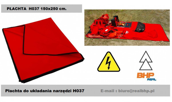 - płachta H037 do układania narzędzi i sprzętu izolowanego wykonana z mocnej tkaniny poliestrowej odpornej na wilgoć, stosowana jest pracach PPN przy obsłudze linii napowietrznych i urządzeń rozdzielczych