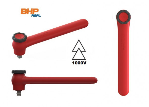 - pokrętło grzechotka izolowane HG A113.0101 do nasadek, głowica robocza czworokątna wykonana ze stali CRV z jednowarstwową izolacją, ramię wykonane z elektroizolacyjnego poliamidu wzmocnionego włóknem szklanym w kolorze czerwonym, stosowana w pracach PPN