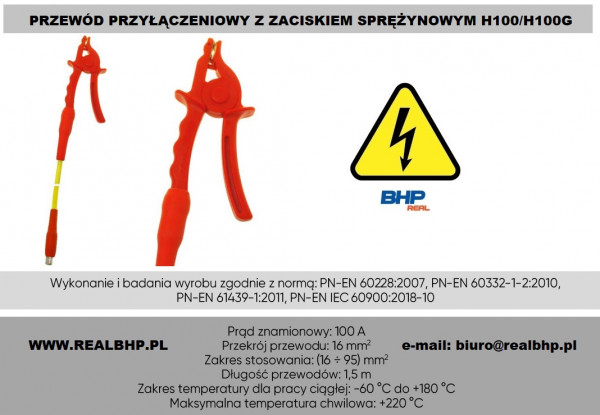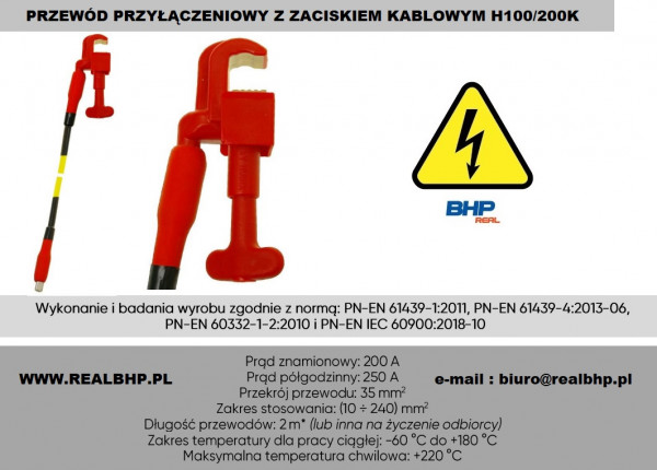 - H100/200K przewód przyłączeniowy z zaciskiem kablowym D112.2006 - 780,00 zł netto sztuka + 23% Vat.