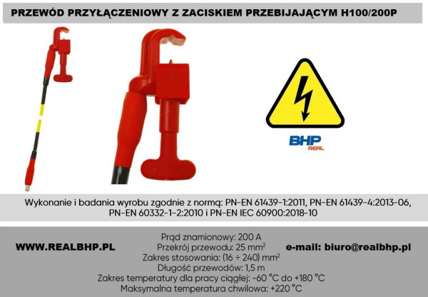 - H100/200P przewód przyłączeniowy z zaciskiem przebijającym D112.2009 - 780,00 zł netto + 23% Vat.