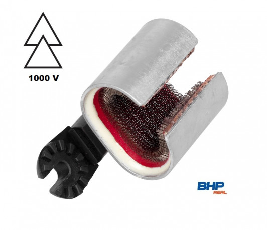 - metalowa szczotka H015 z włosiem stalowym do czyszczenia przewodów linii napowietrznych z korozji i zanieczyszczeń przed założeniem bocznika izolowanego lub zacisku podczas prac pod napięciem