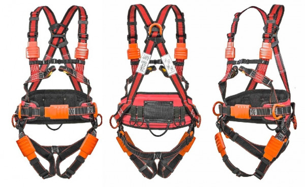 - szelki asekuracyjne P-51EmX wyposażone w tylny oraz przedni punkt zaczepowy do łączenia podzespołów ochronno-amortyzujących jak amortyzatory, liny, karabińczyki