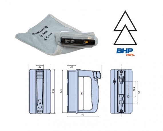 - uchwyt do bezpieczników mocy BM z rękawem skórzanym przeznaczony do wyjmowania wkładek bezpiecznikowych wyposażony w trwale zamocowany rękaw skórzany chroniący przed skutkami powstania zwarciowego łuku elektrycznego