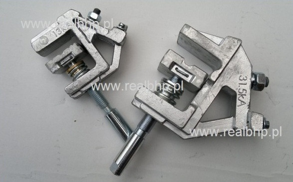 - uziemiacz przenośny jednofazowy U1-P-3-31,5/1-150 wyposażony w zacisk fazowy P przeznaczony do zakładania na szyny prądowe płaskie o maksymalnej grubości do 28 mm.
