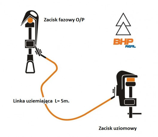 - zacisk fazowy O/P uziemiacza zakładany za pomocą drążka izolacyjnego z głowicą UDI oraz zaczepu manewrowego typu KD ZU lub ZL