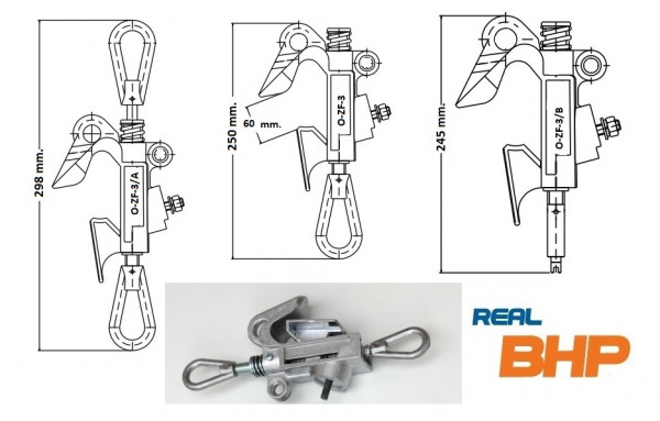 - O-ZF3 przystosowany na przewody okrągłe o przekroju AFL-20 840 mm2 oraz linii energetycznych NN SN WN o średnicy do 50 mm. ( odpowiednik zacisku uziemiacza O-WT-3 Aktywizacja )