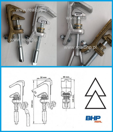 - zacisk przystosowany do mocowania na szynach płaskich o grubości 28 mm. oraz przewodach okrągłych typu Bezpol oraz Belos