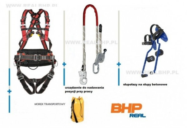 - zestaw sprzętu do pracy na słupach żelbetonowych energetycznych do PPN wyposażony w profesjonalne akcesoria do pracy na wysokości :