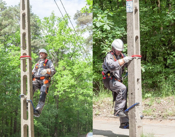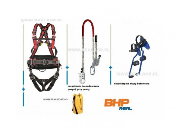 - zestaw asekuracyjny sprzętu do pracy na słupach żelbetonowych energetycznych do PPN wyposażony w profesjonalne akcesoria do pracy na wysokości :